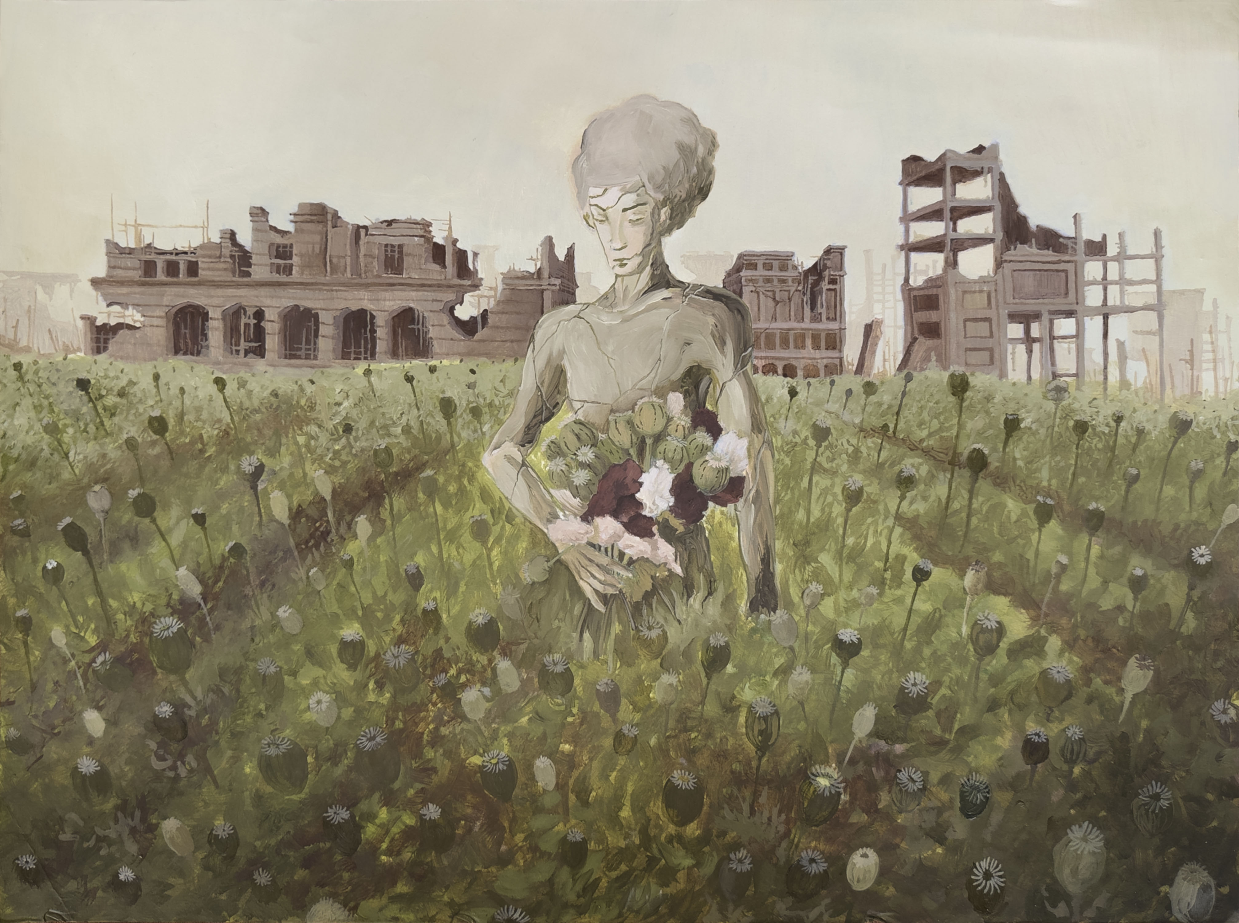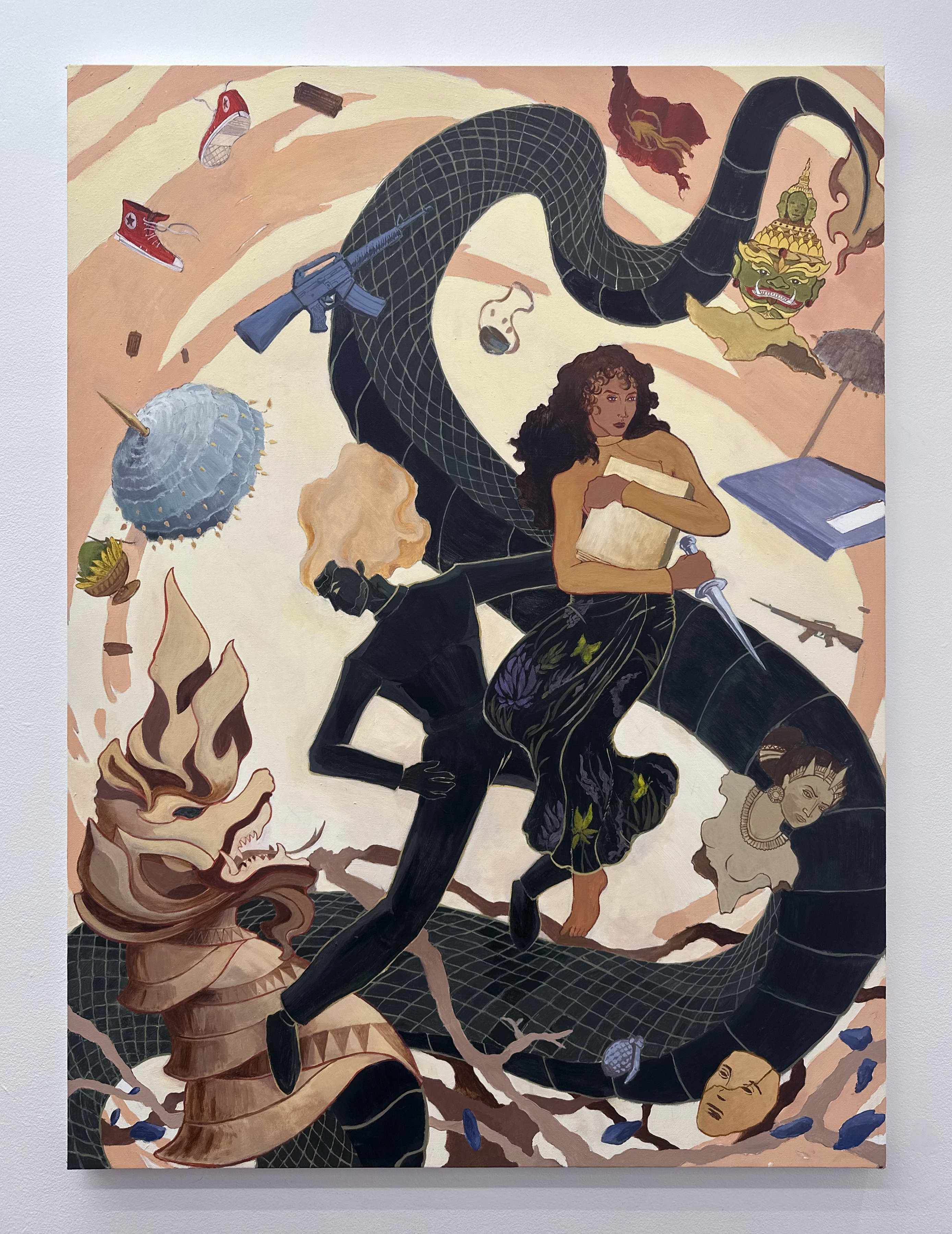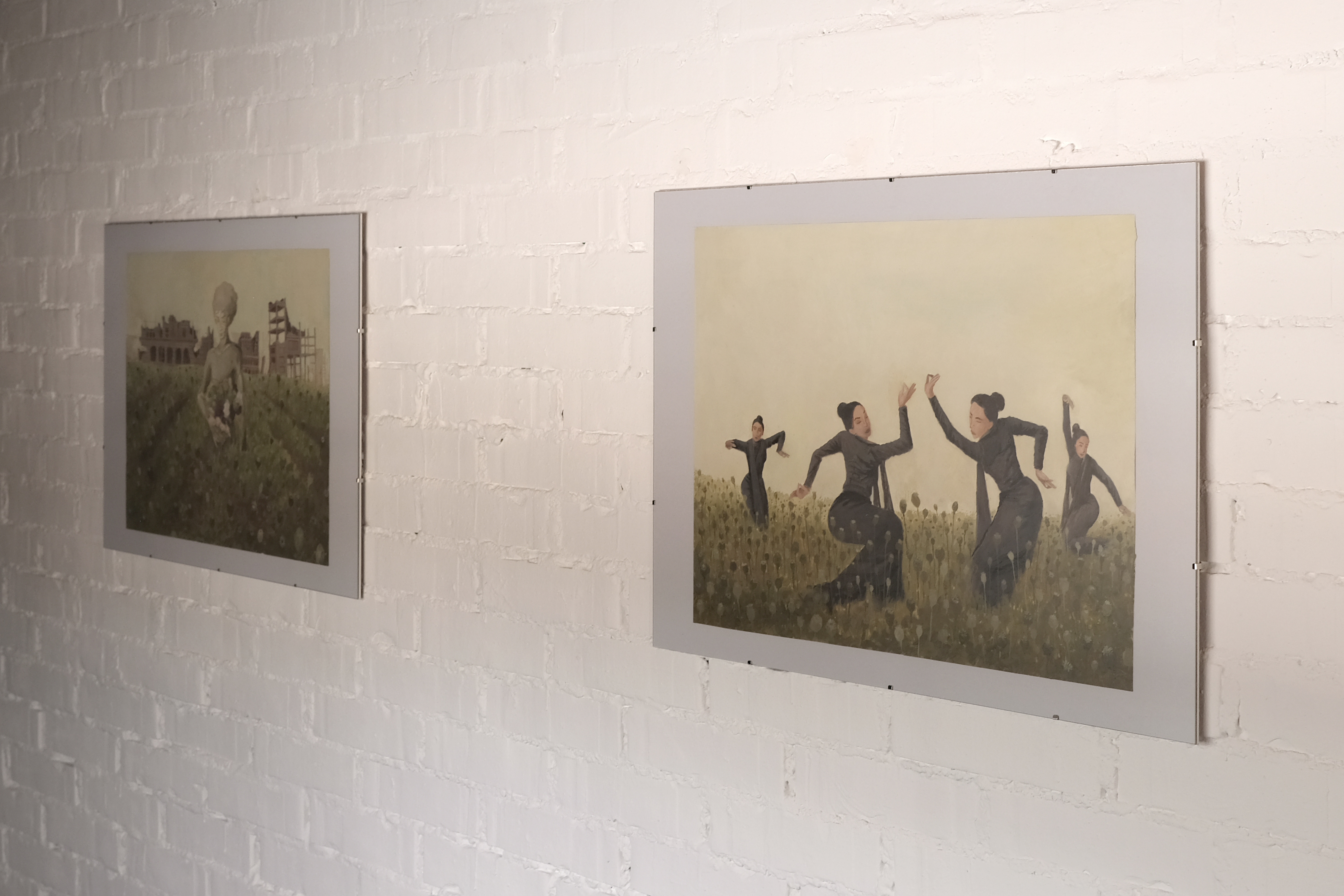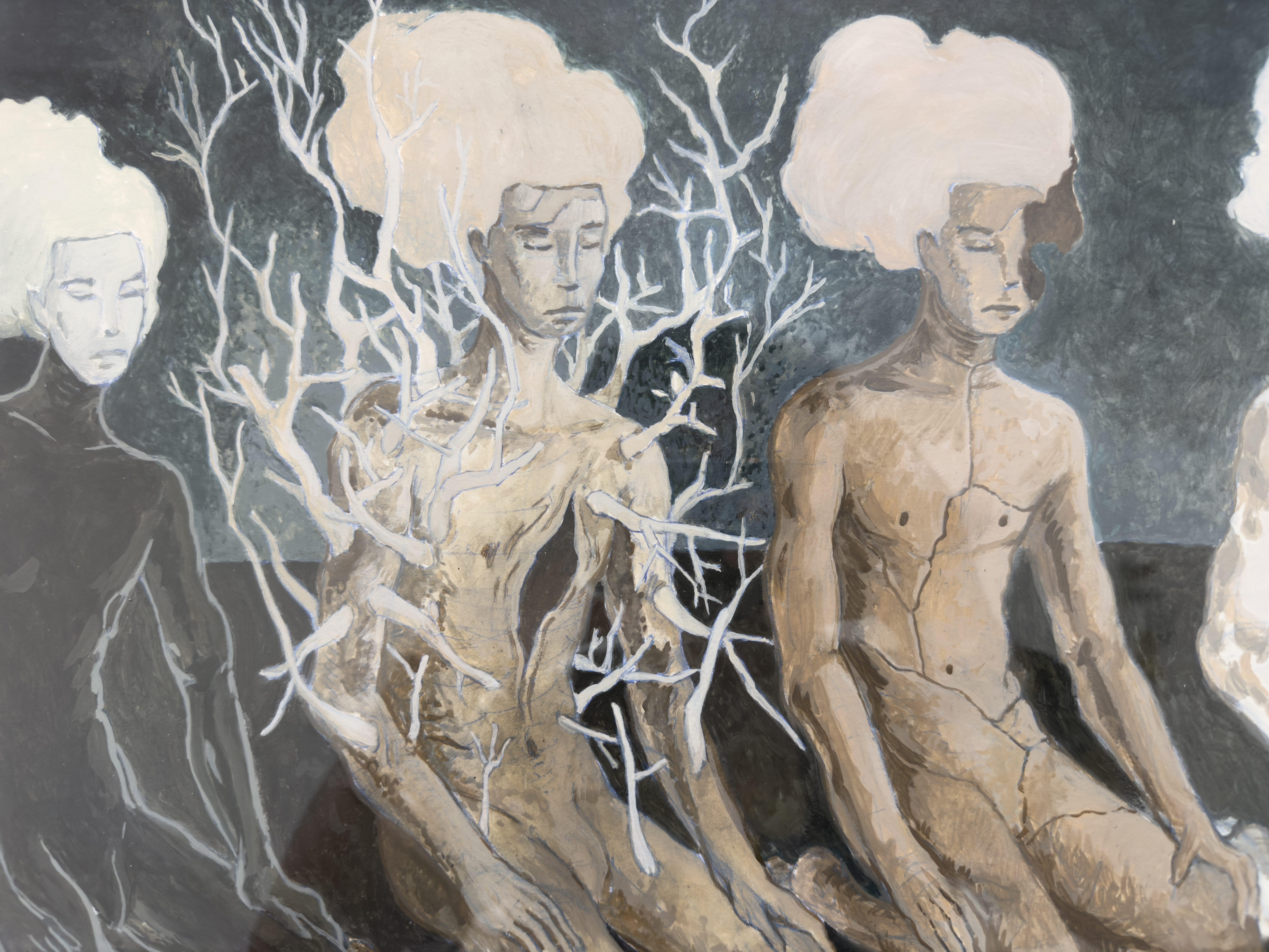 Threshold is a long running series of world-building work that spans across multiple mediums from paintings and illustrations to sculpture. The visual language of cinema, folklore, religion, and fiction are some of the main tools used to build the world of Threshold as the characters known as The Inter-dimensionals play out their fates in each vignette. This body of work deals with the themes of transitions, agency, the idea of home, leaving home, finding home, and complex relationships with home.